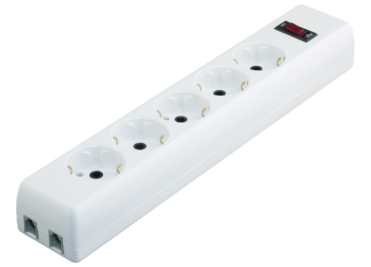 Produžni kabel 5U 5m sa linijskom i prenaponskom zaštitom Namjena: zaštita računala, TV uređaja, DVD-a, glazbenih uređaja, satelitskih sustava od pojave naponskih pikova u električnim instalacijama, kao i telefonskim instalacijama. Svaki produžni kabel posjeduje prekidač za reset. Kabel: PP/J 3×1,5 mm2 Pakiranje: 1 kom