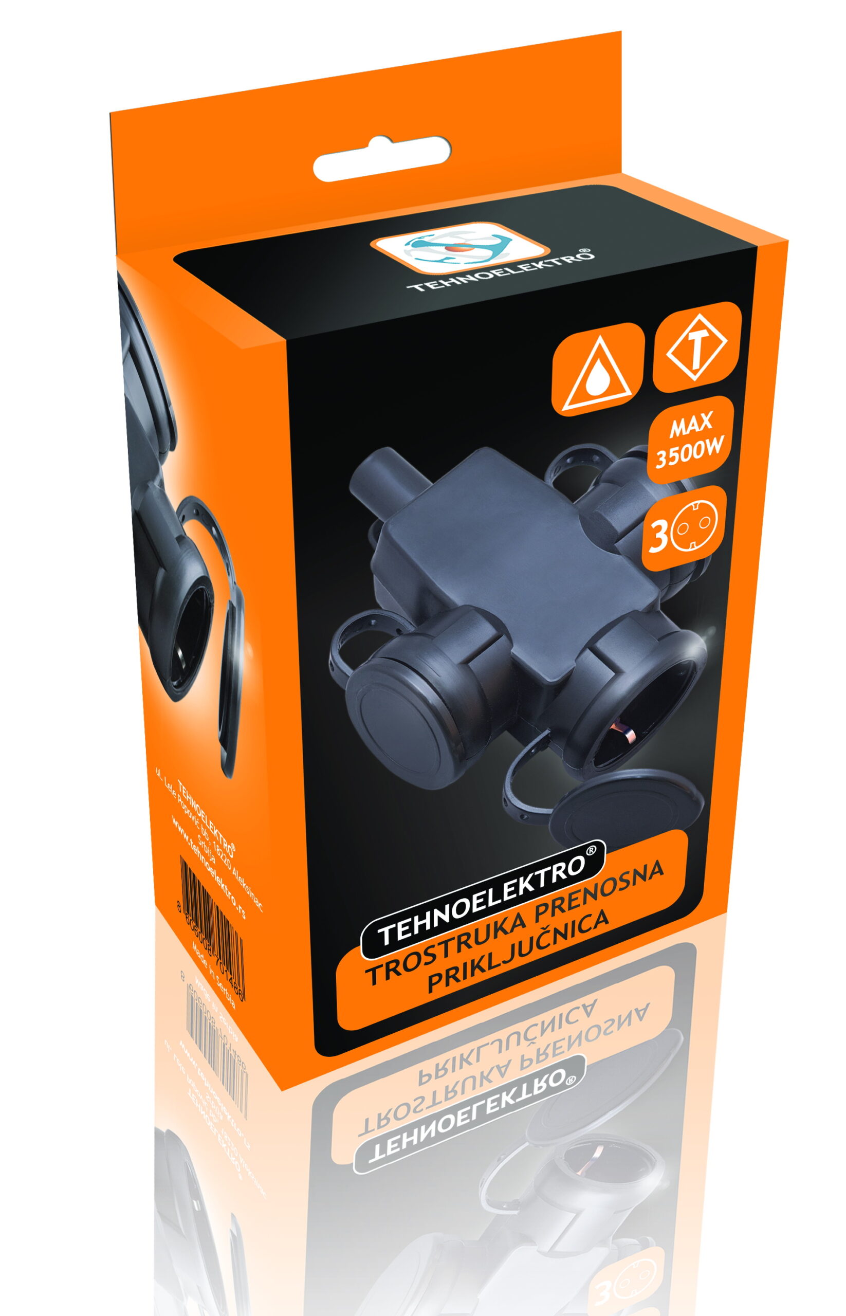 Cijena u EUR: 14.98 € Spojka trostruka IP65 prijenosna crna guma Zaštita poklopcima od vlage Otpornost na lomljenje Tri utična mjesta za istovrjemeno povezivanje Maksimalna snaga povezanih potrošača do 3500W Usaglašeno sa IEC 60884-1 Materijal: guma Pakiranje: 1 kom