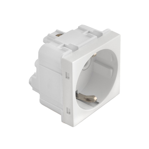 Broj artikla: 22.01.051 Ugradnja: Ugradnja u zid u nosače modula 2M, 3M, 4M ili 7M Stupanj zaštite: IP20 Dimenzije: 44×44 mm Tip priključka: vijčani Uzemljenje: Sa kontaktom za uzemljenje Materijal podsklopa: plastika (polikarbonat) Boja: bijela Pakiranje: 20 kom.